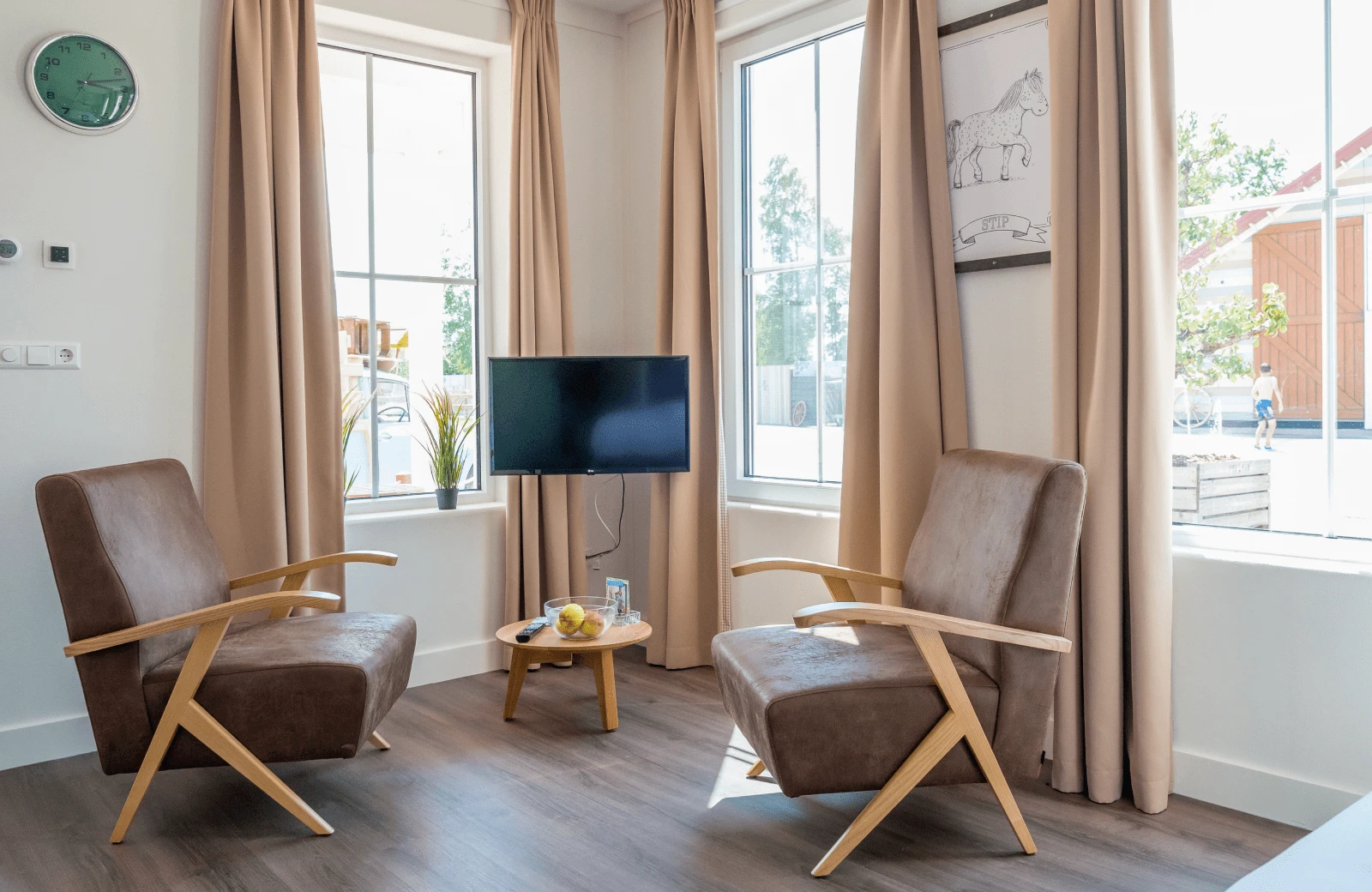 Het thema van de accommodatie dat wordt weergegeven kan per vakantieverblijf verschillen. We hebben accommodaties met het thema Stip de Pony en Aagje de Kip.