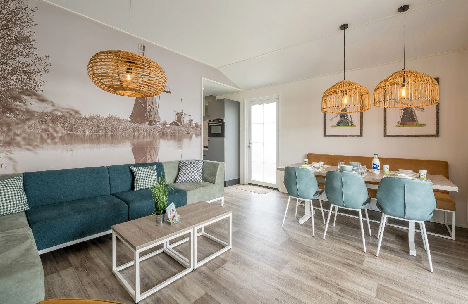 Familie Resort Molenwaard beschikt over 2 Kinderdijk Cottage Hotel met plek voor 6 personen, gesitueerd direct aan de natuurplas. De accommodaties zijn ingericht in prachtige blauwtinten en geheel in thema van Wereld Erfgoed Kinderdijk. Natuurlijk ligt bij iedere Kinderdijk Cottage ook, op loopafstand, een speelgelegenheid waar de jongste gasten zich kunnen vermaken.