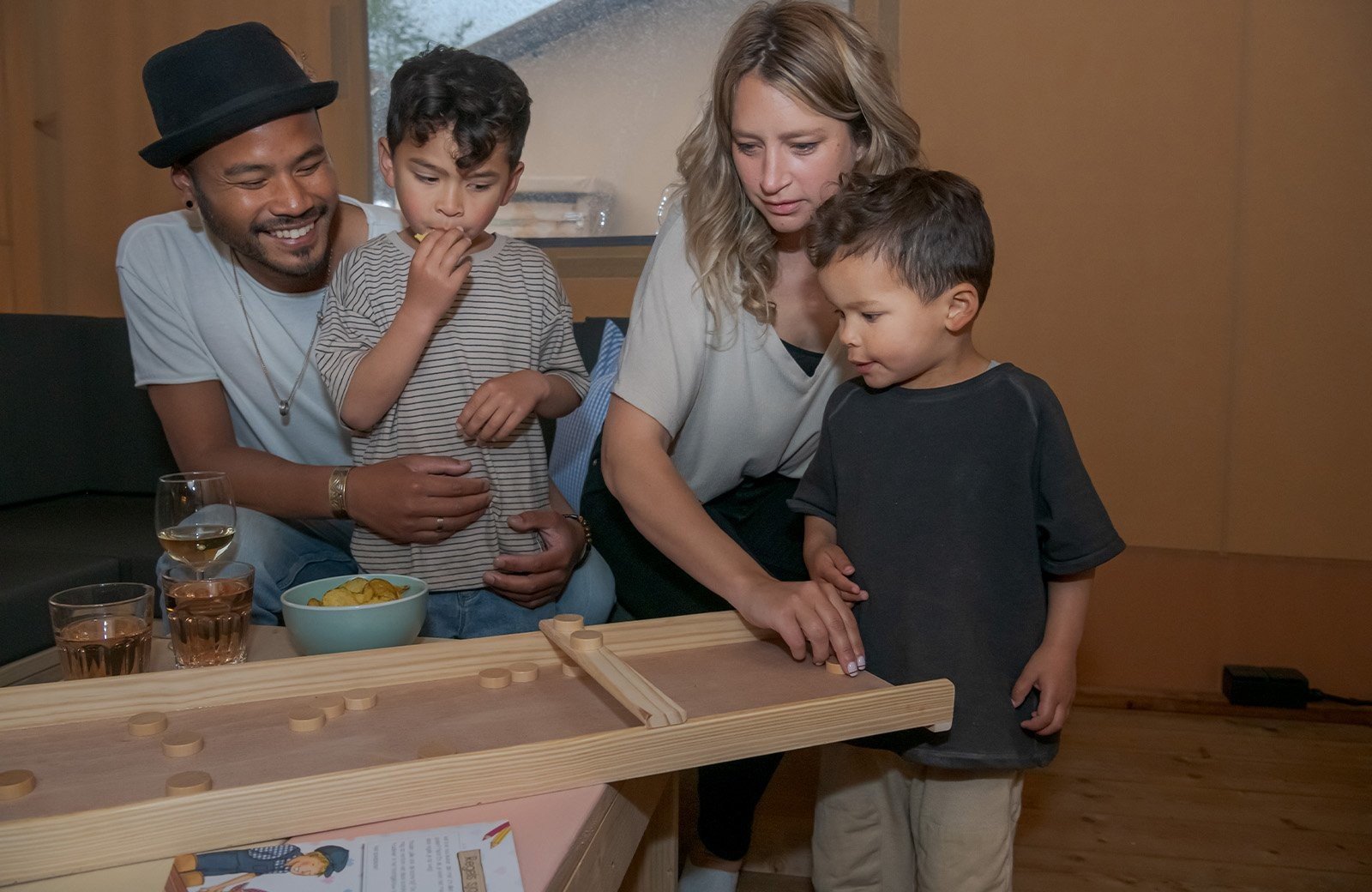 Ervaar de luxe van een huisje én het plezier van kamperen, in de sfeervolle Avonturentent. Door het overdekte terras loopt de buitenruimte naadloos over in de binnenruimte. Zo geniet je samen van dat heerlijke vrije kampeergevoel, met extra comfort.