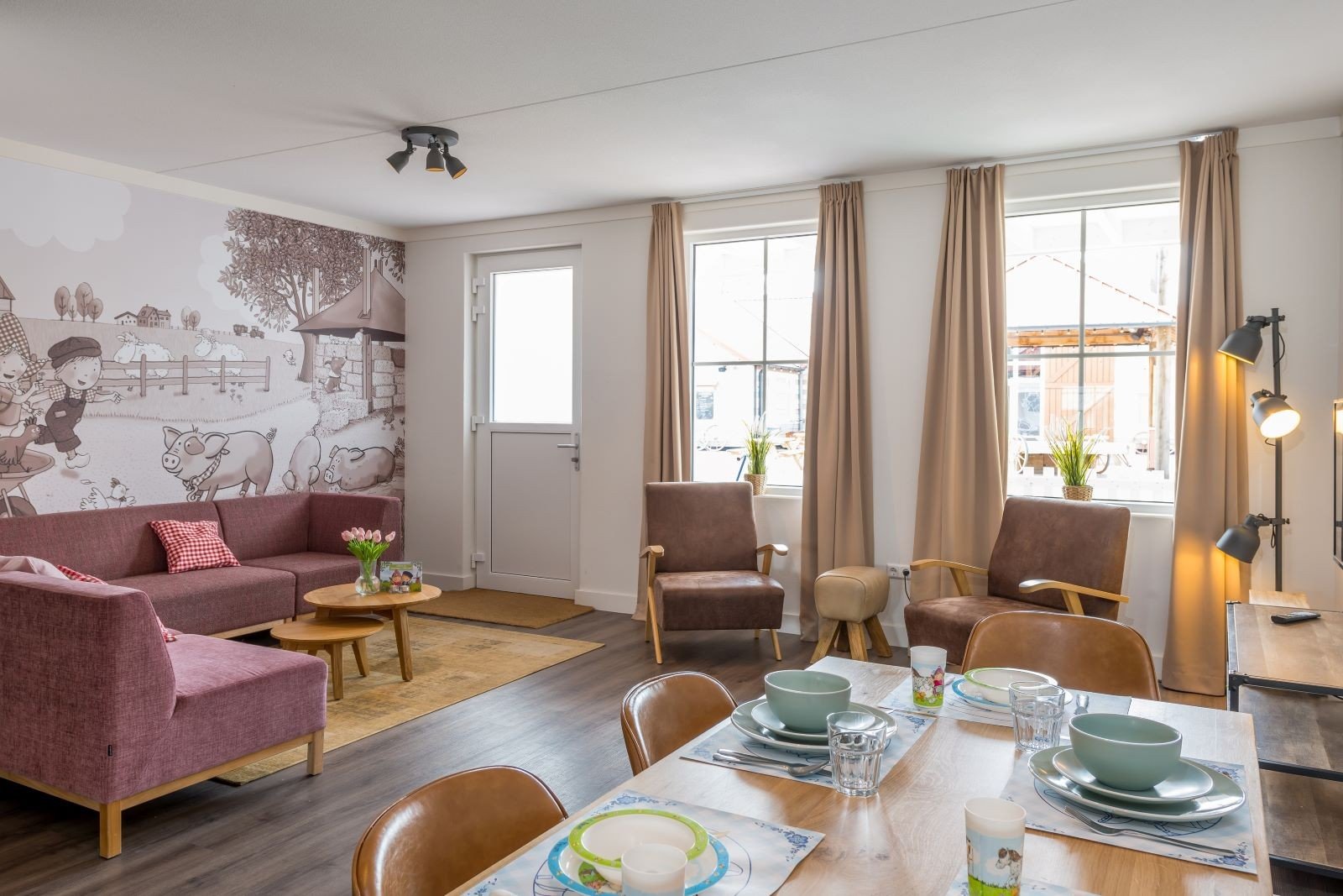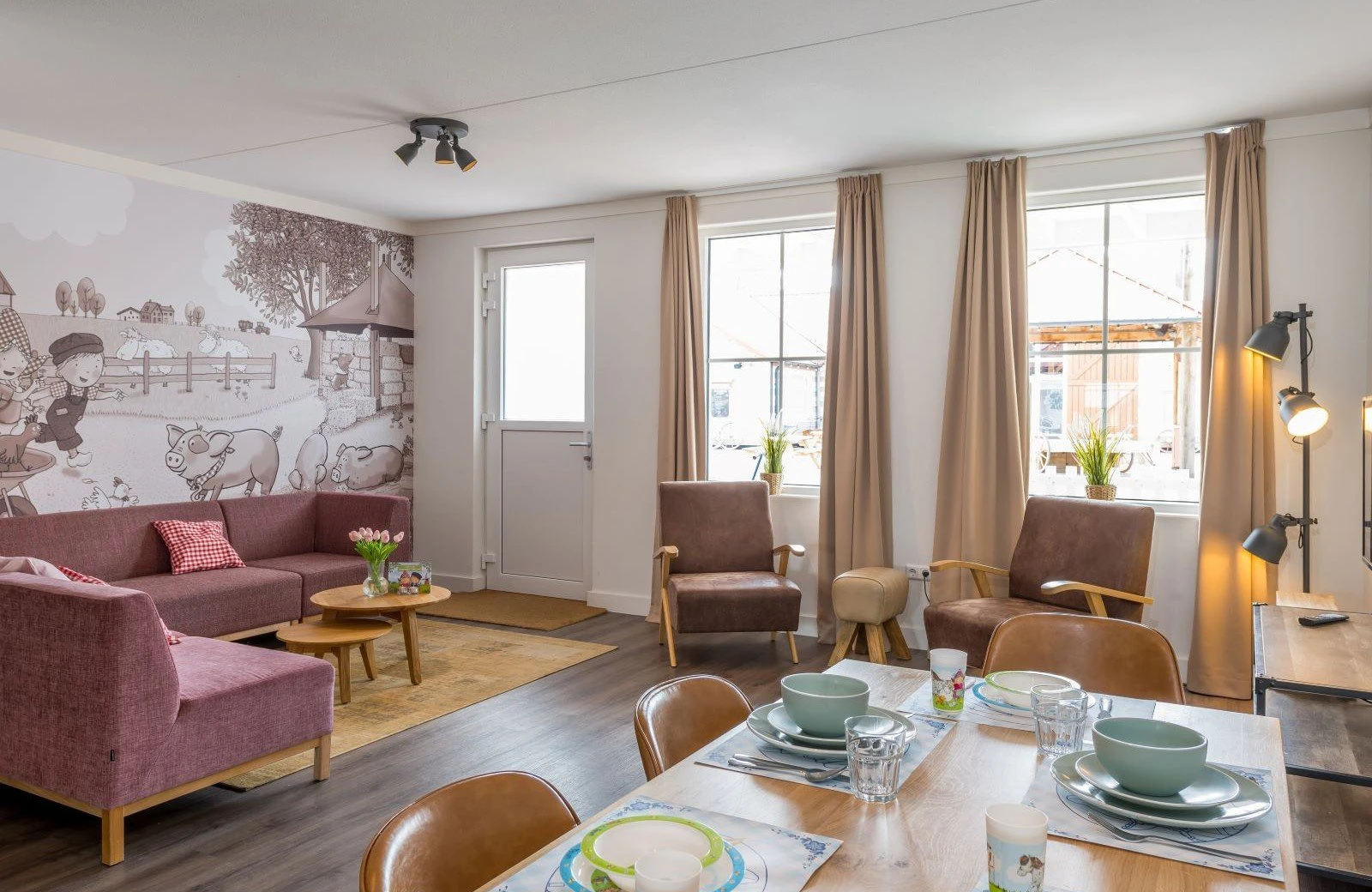 Deze accommodatie is onderdeel van een rijtje aaneengeschakelde woningen. De 8-persoons Dorpsstraat bestaat uit twee woonlagen en is van alle gemakken voorzien. De woning is volledig ingericht in Sebastiaan het varken stijl en heeft een gezellige woonkamer met zit- en eethoek. Omdat Sebastiaan het varken bekend staat om zijn vrolijke karakter, kan je zeker zijn van een vrolijk roze verblijf.