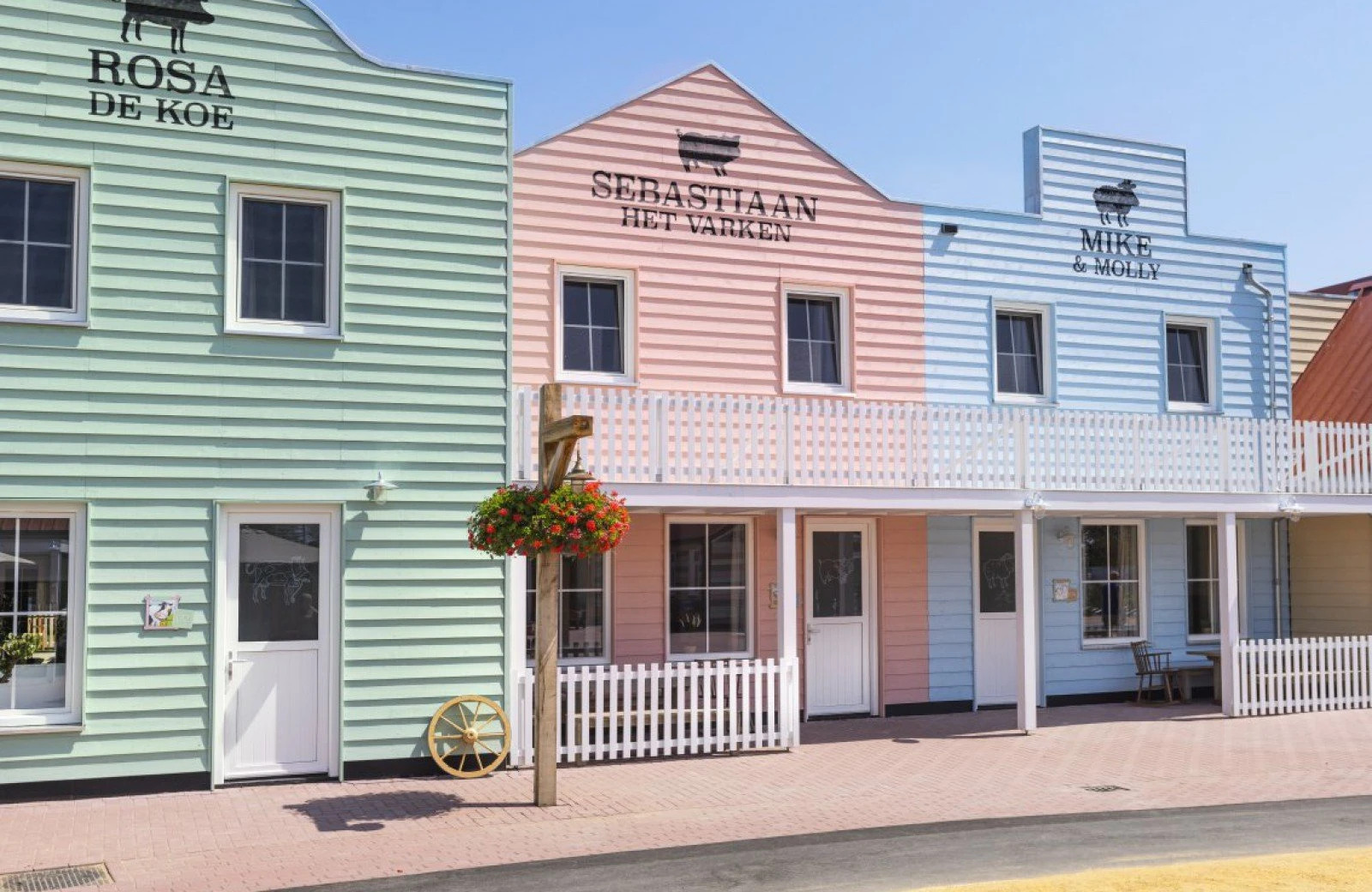 Familie Resort Molenwaard beschikt over drie gethematiseerde accommodaties voor 8 personen in de Dorpsstraat. Stap de deur uit en vind daar direct Speelschuur Molenwaard, de Frieterie en het IJskuipje. Of plof neer op het overdekte terras met uitzicht op het fonteinenplein. De jongste gasten kunnen op steenworpafstand urenlang spelen en genieten van al het entertainment.