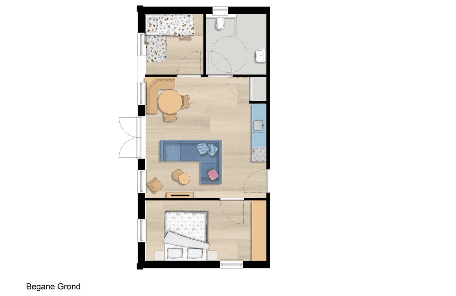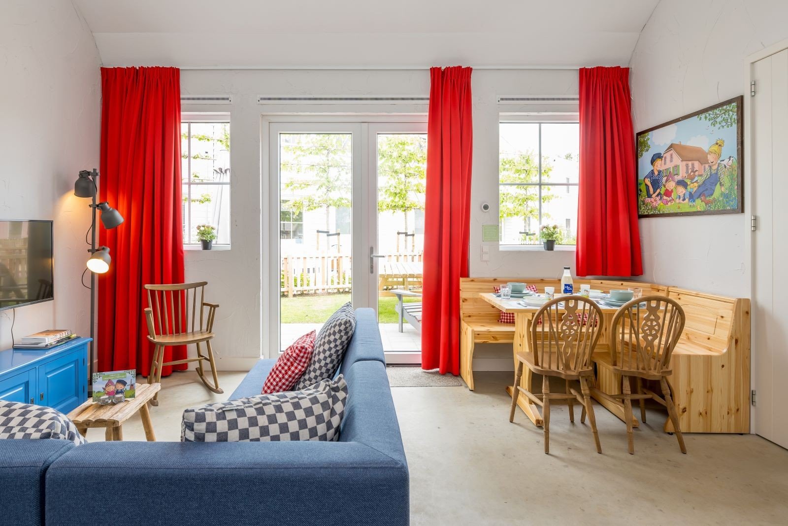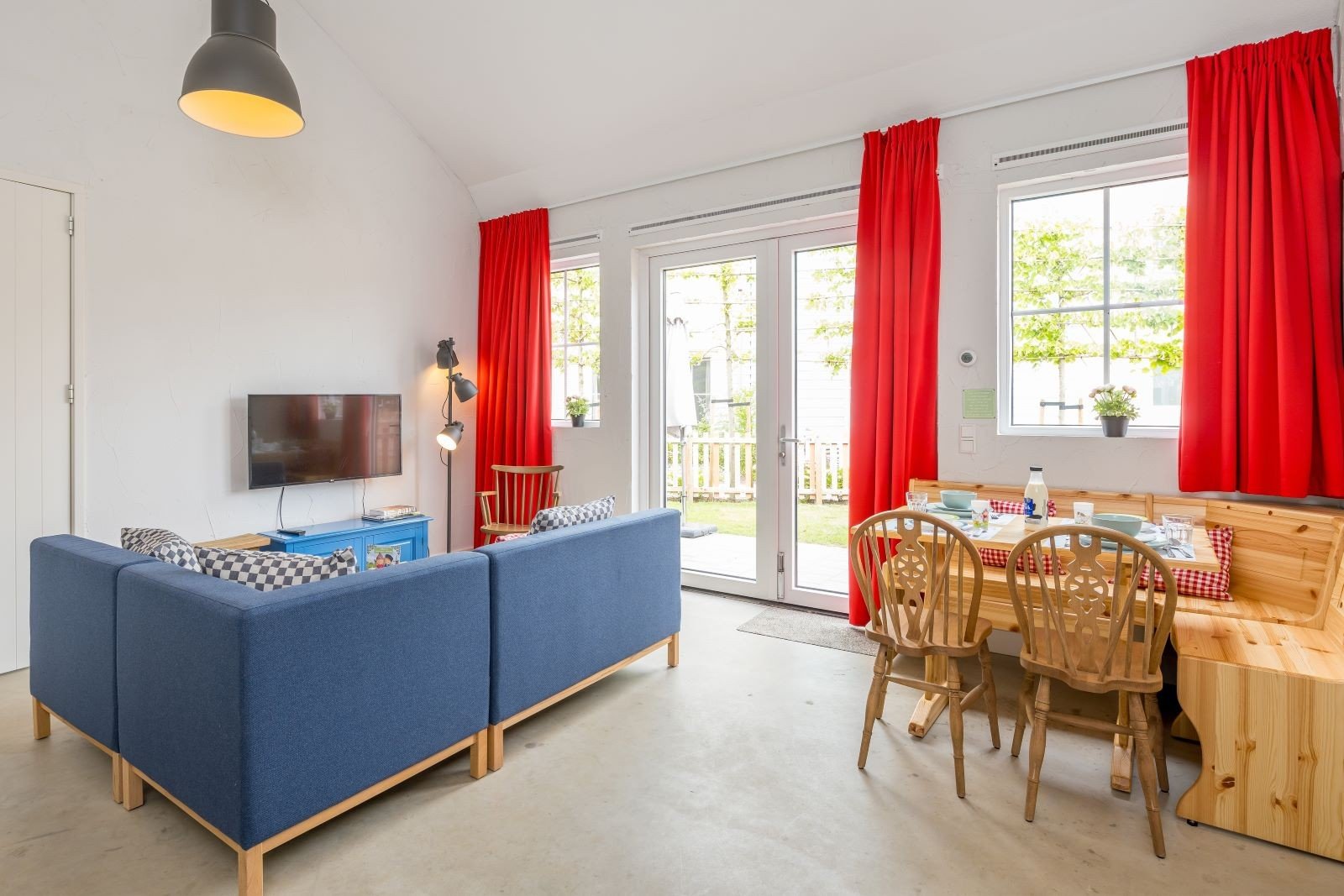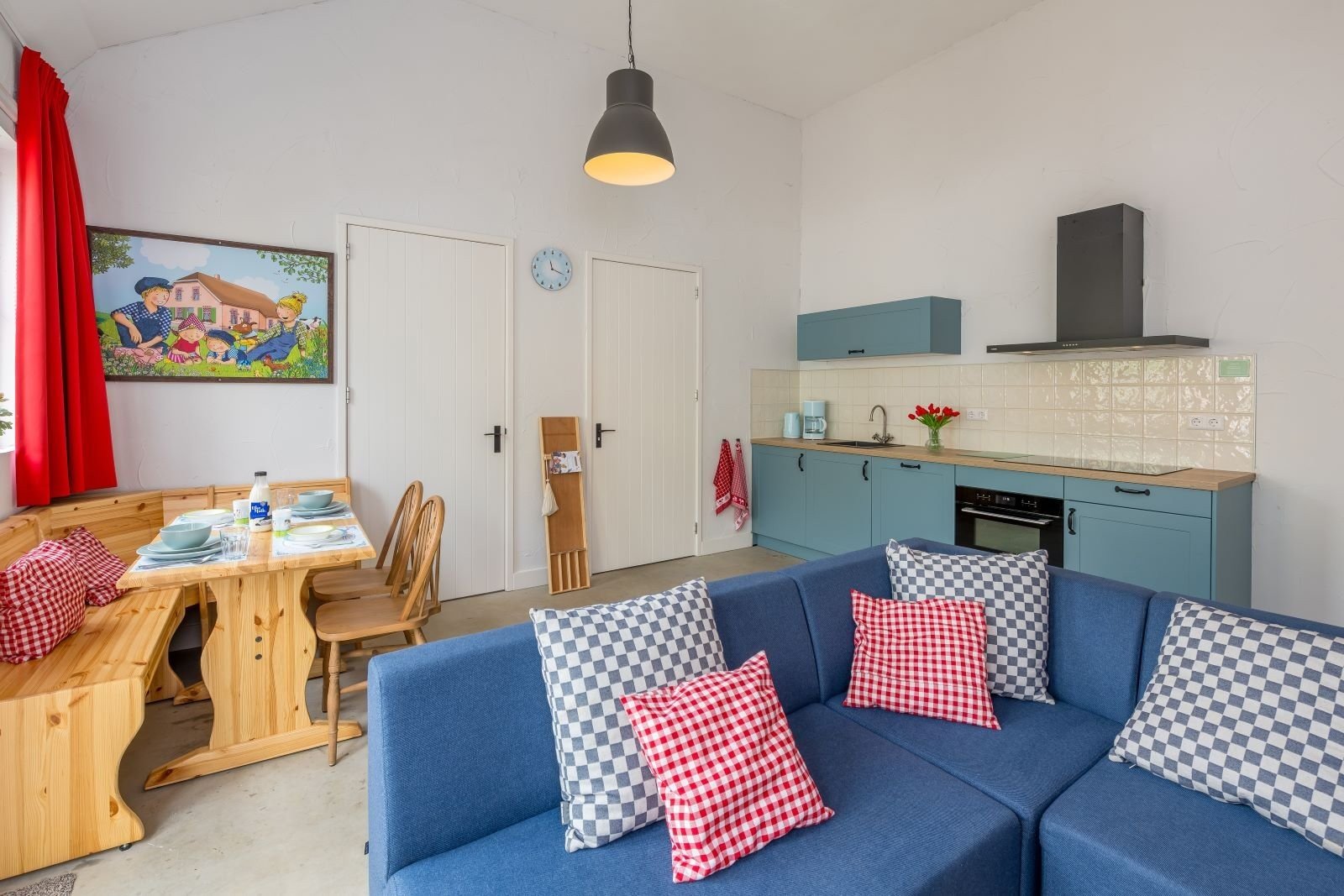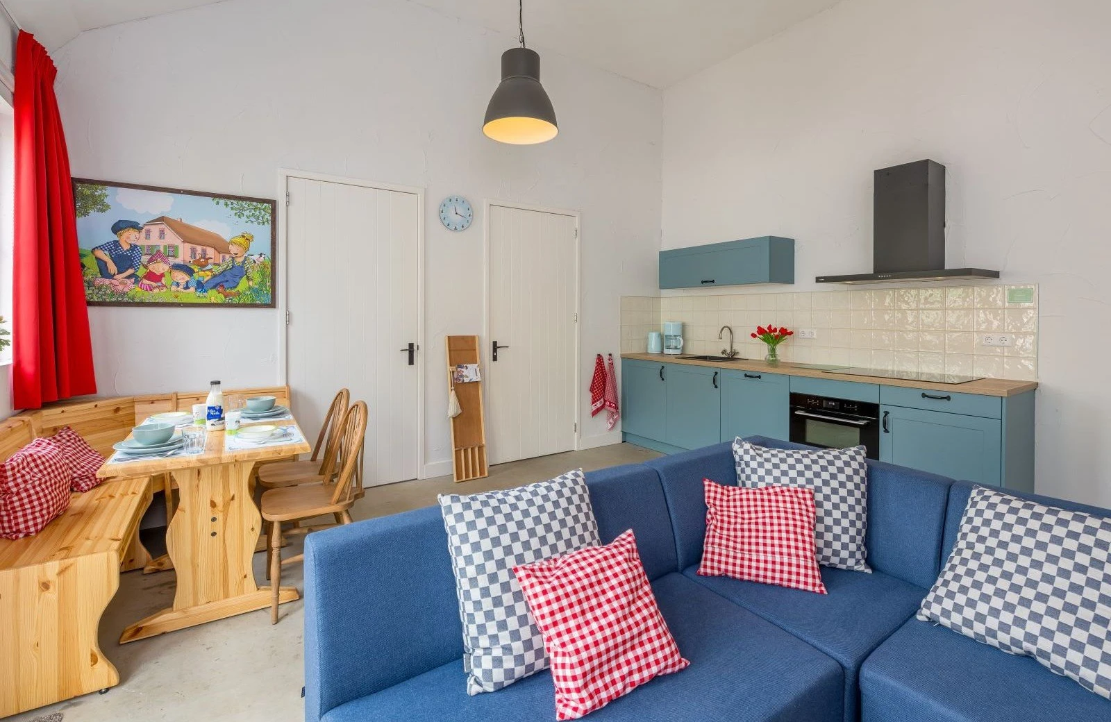 De robuuste Hooimijt beschikt over een ruime woonkamer met gezellige zit- en eethoek. De keuken is voorzien van onder andere een kookplaat, koffiezetapparaat, waterkoker, koelkast, vaatwasser en combimagnetron. Jouw onbezorgde nachtrust vind je in één slaapkamer met een tweepersoons boxspring en één slaapkamer met een stapelbed. Ook is de woning in de Hooimijt voorzien van een aangepaste badkamer met douche en toilet. Daarnaast is de gehele woning gelijkvloers; op elk mogelijke plek in de Hooimijt is rekening gehouden met de rolstoeltoegankelijkheid.
