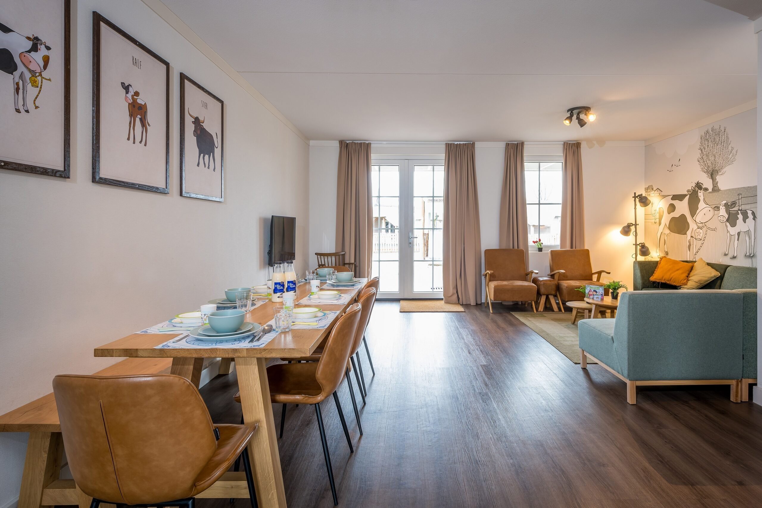 Deze accommodatie is onderdeel van een rijtje aaneengeschakelde woningen. De 8-persoons Luxe Dorpsstraat bestaat uit twee woonlagen en is van alle gemakken voorzien. De woning is volledig ingericht in Rosa de koe stijl en heeft een gezellige woonkamer met zit- en eethoek. Verblijf jij in deze accommodatie? Laat je dan verrassen door een verblijf vol koeienvlekken.