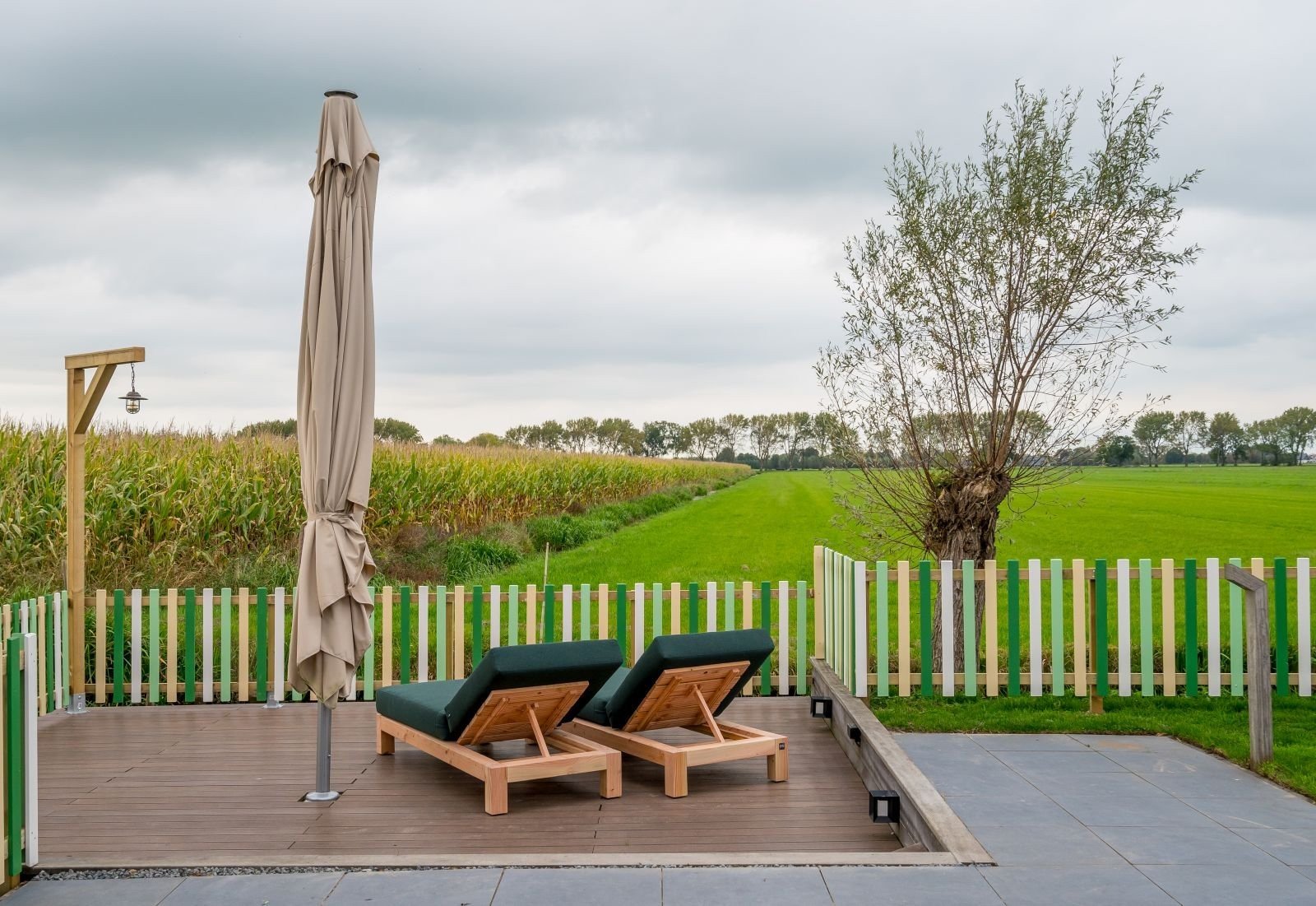 Je kunt optimaal van de tuin genieten door de openslaande deuren vanuit de woonkamer. In de tuin staat een eigen schommel- en speeltoestel, een hottub met bubbelfunctie, loungeset, eettafel, en een buitenkeuken met gas BBQ. Alles om optimaal te genieten en ontspannen met jouw vriendengroep of familie. De tuin is volledig omheind, hierdoor kun je ook de kinderen vrij laten spelen in de tuin. Ook biedt het vrij uitzicht op de polder en heeft een zonnescherm aan de zonzijde van het huis.