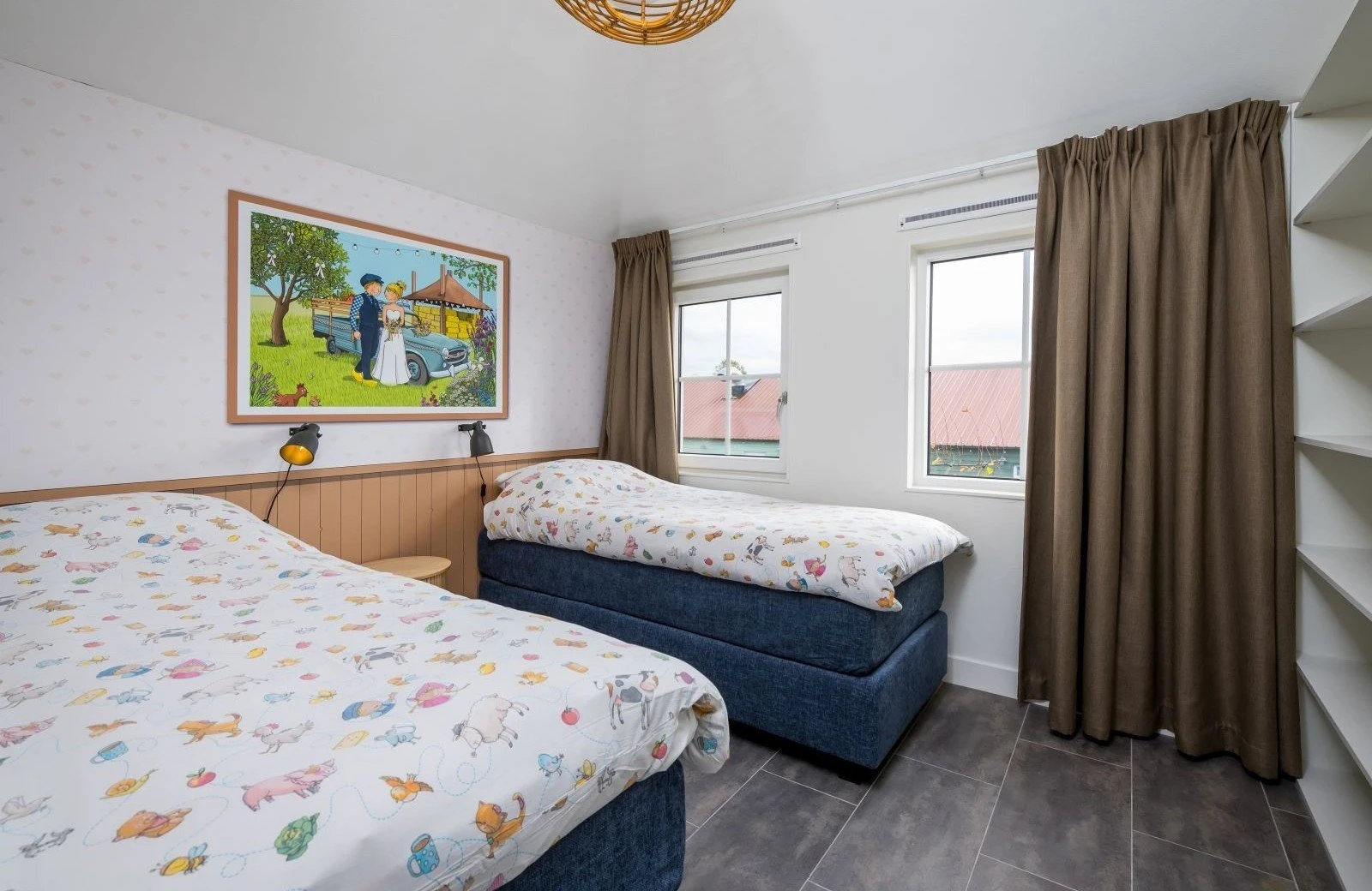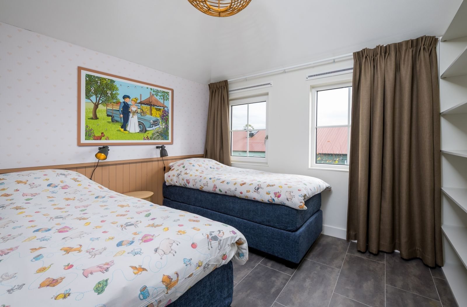 - Slaapkamer 3: Twee eenpersoons boxsprings een inbouwkast