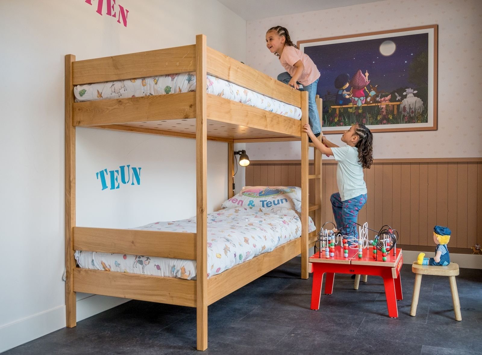 - Slaapkamer 3: Één stapelbed en een houten ledikant