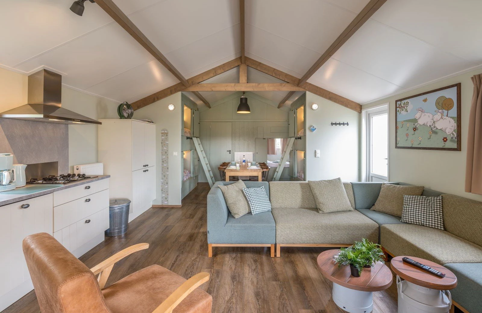 Overdag stap je vanuit de woonkamer direct op jouw eigen omheinde veranda en geniet je van een prachtig uitzicht over de schapenweide. Hollandser wordt het niet! Kom jij ook gezellig logeren?
