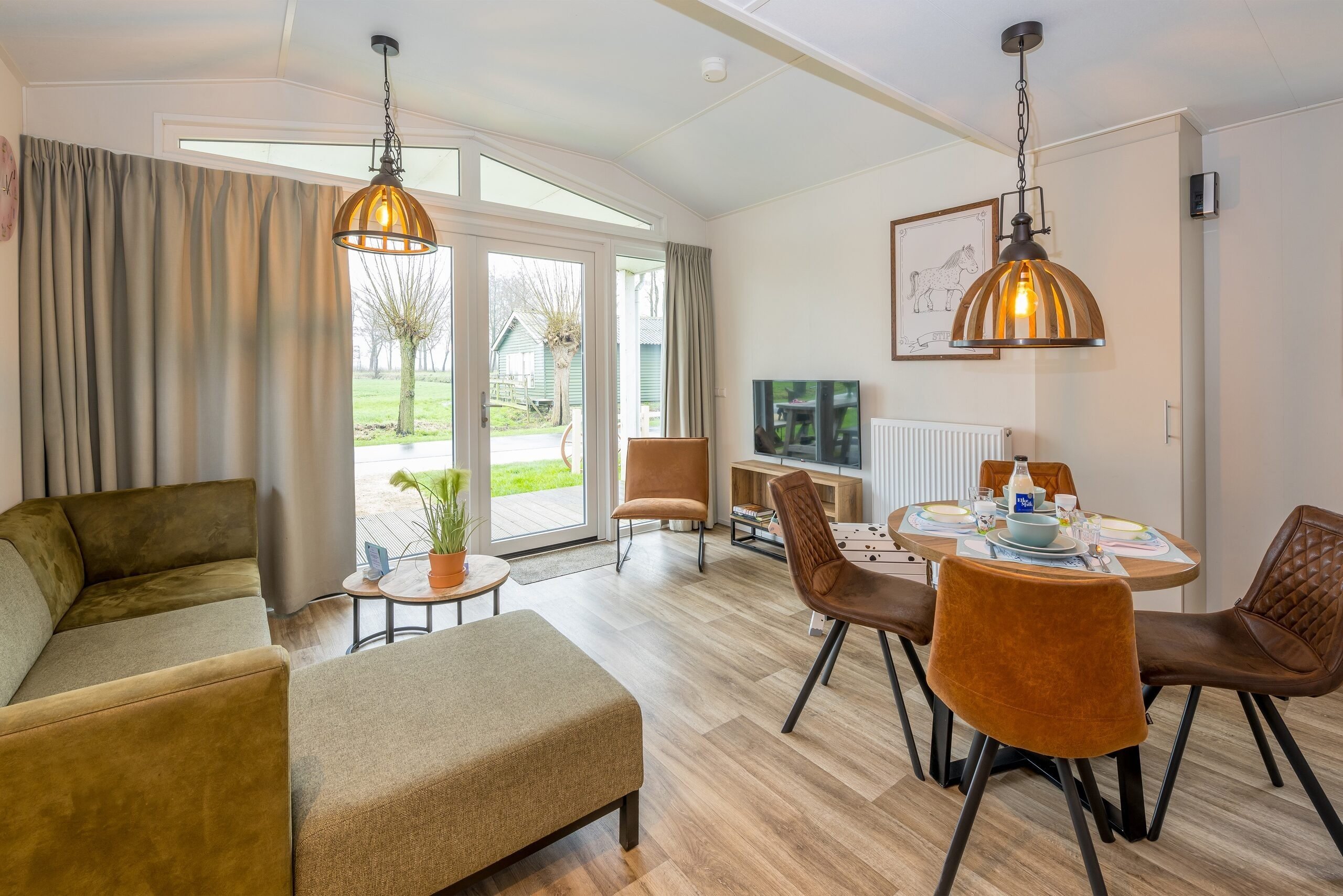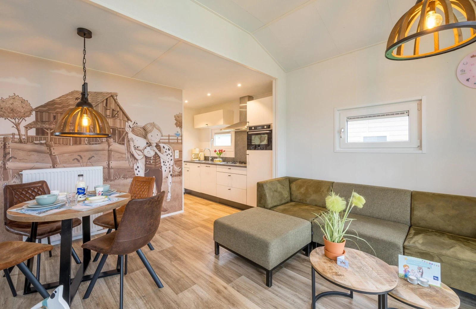 De vrijstaande Stip de Pony Lodges zijn volledig gethematiseerd in stijl van Stip de Pony. Je vindt hier dan ook van alles terug over dit ondeugende dierenvriendje van Fien en Teun. Verder beschikt de accommodatie over een gezellige woonkamer met zit- en eethoek. De keuken is voorzien van onder andere een kookplaat, koffiezetapparaat, waterkoker, koelkast, vaatwasser en combimagnetron.