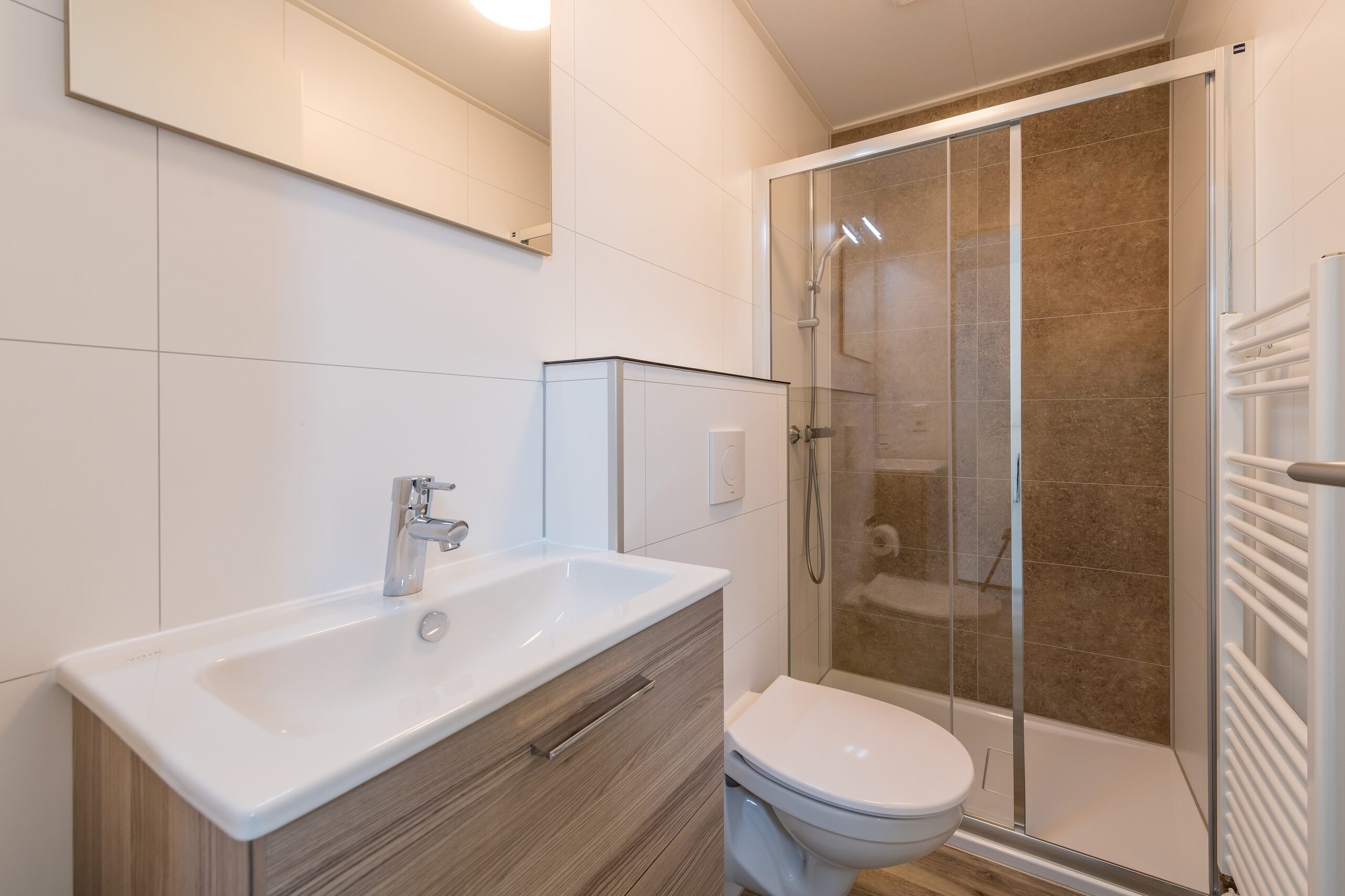 Er is één slaapkamer met twee eenpersoons boxsprings en één slaapkamer met een tweepersoons boxspring. Uiteraard is de Stip de Pony Lodge ook voorzien van een badkamer met douche en toilet.