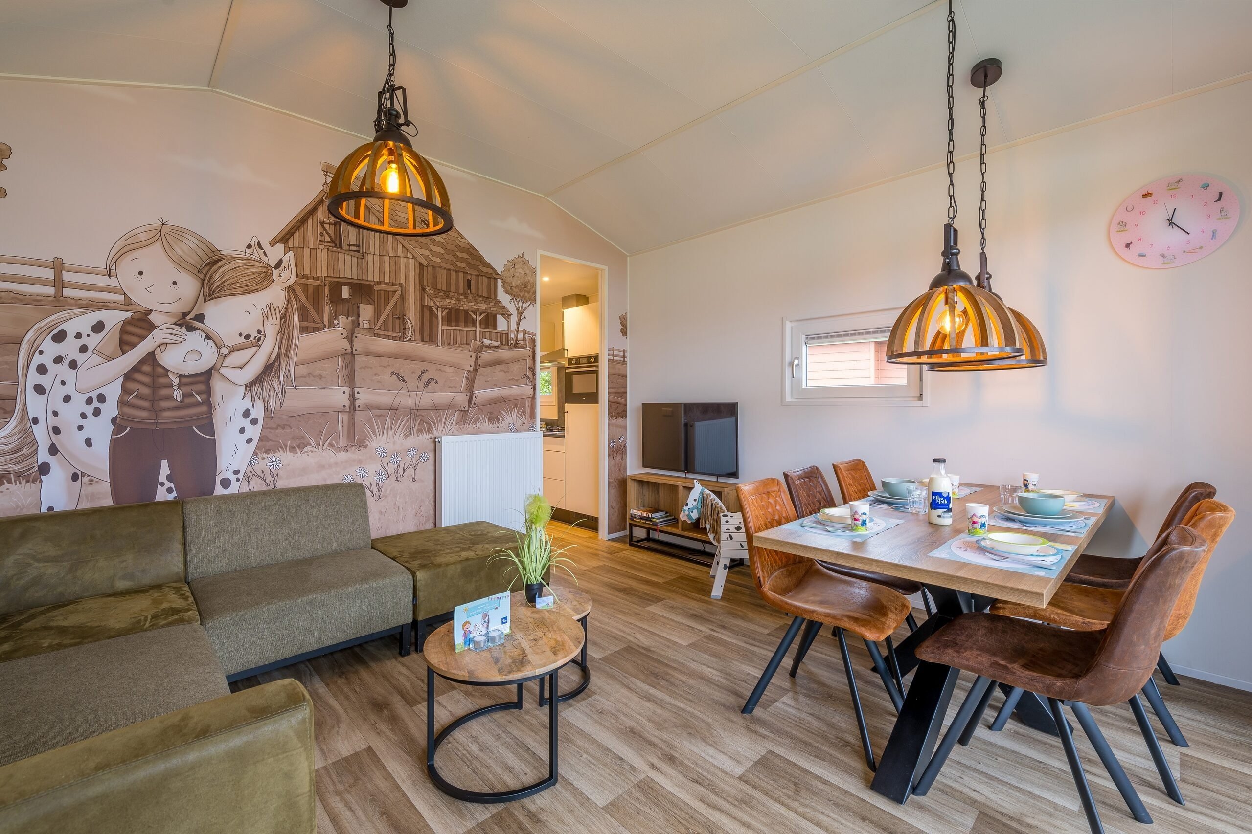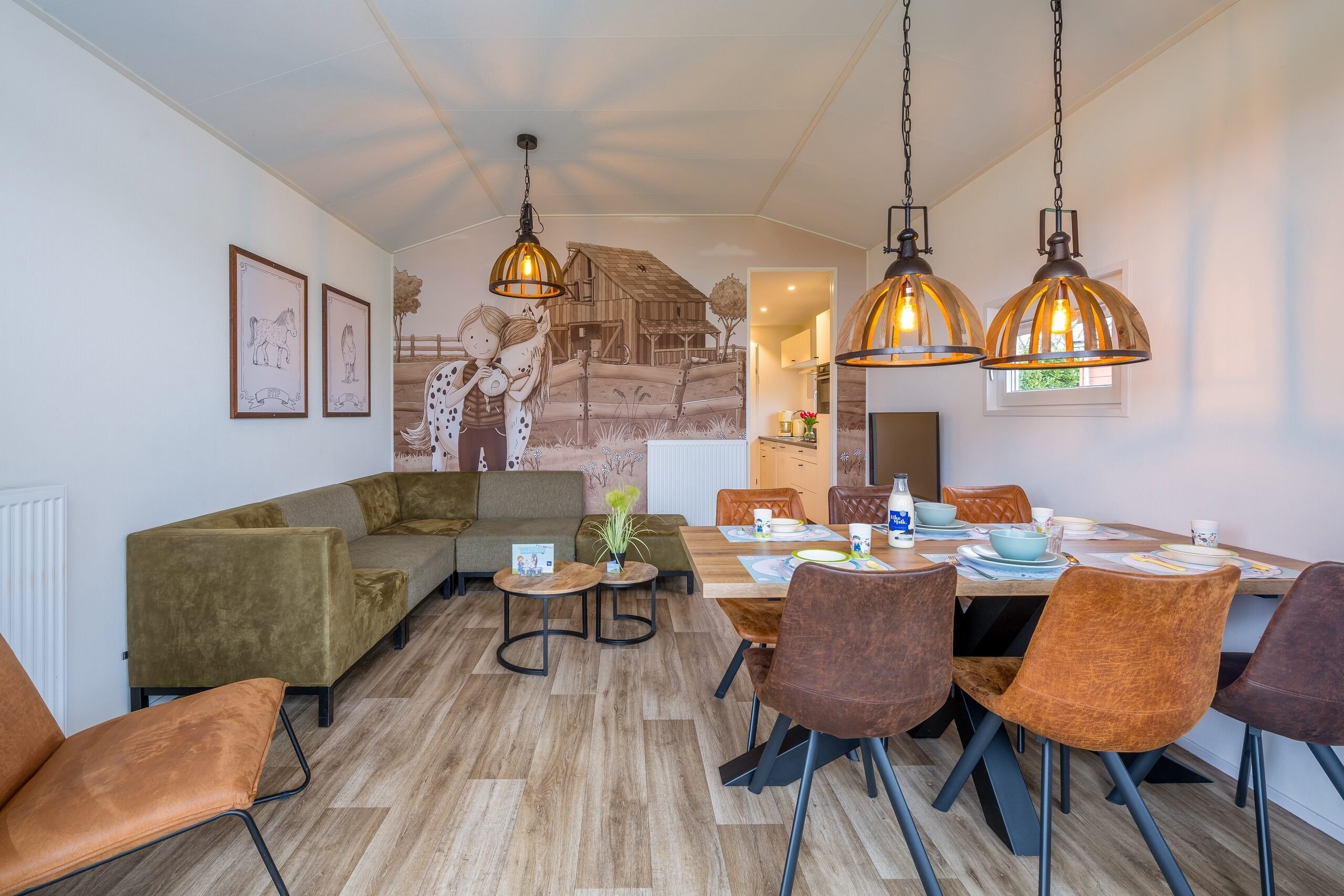 De vrijstaande Stip de Pony Lodges zijn volledig gethematiseerd in stijl van Stip de Pony. Je vindt hier dan ook van alles terug over dit ondeugende dierenvriendje van Fien en Teun. Verder beschikt de accommodatie over een gezellige woonkamer met zit- en eethoek. De keuken is voorzien van onder andere een kookplaat, koffiezetapparaat, waterkoker, koelkast, vaatwasser en combimagnetron.