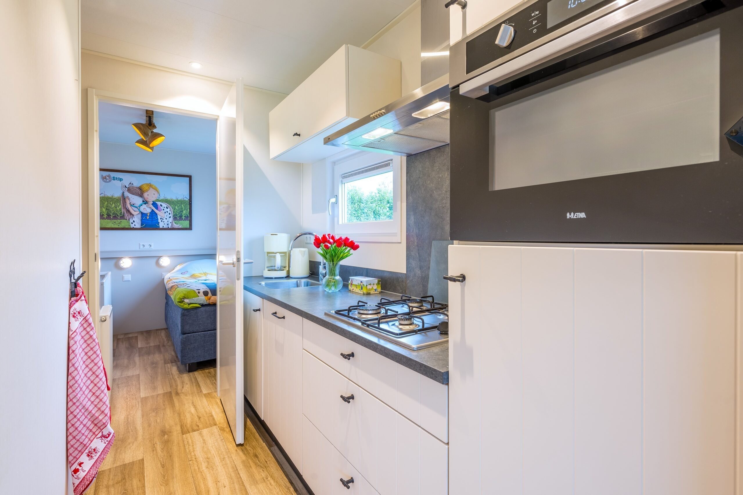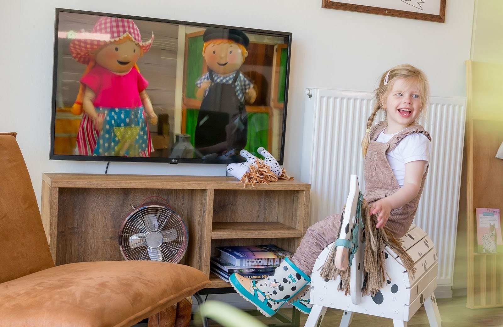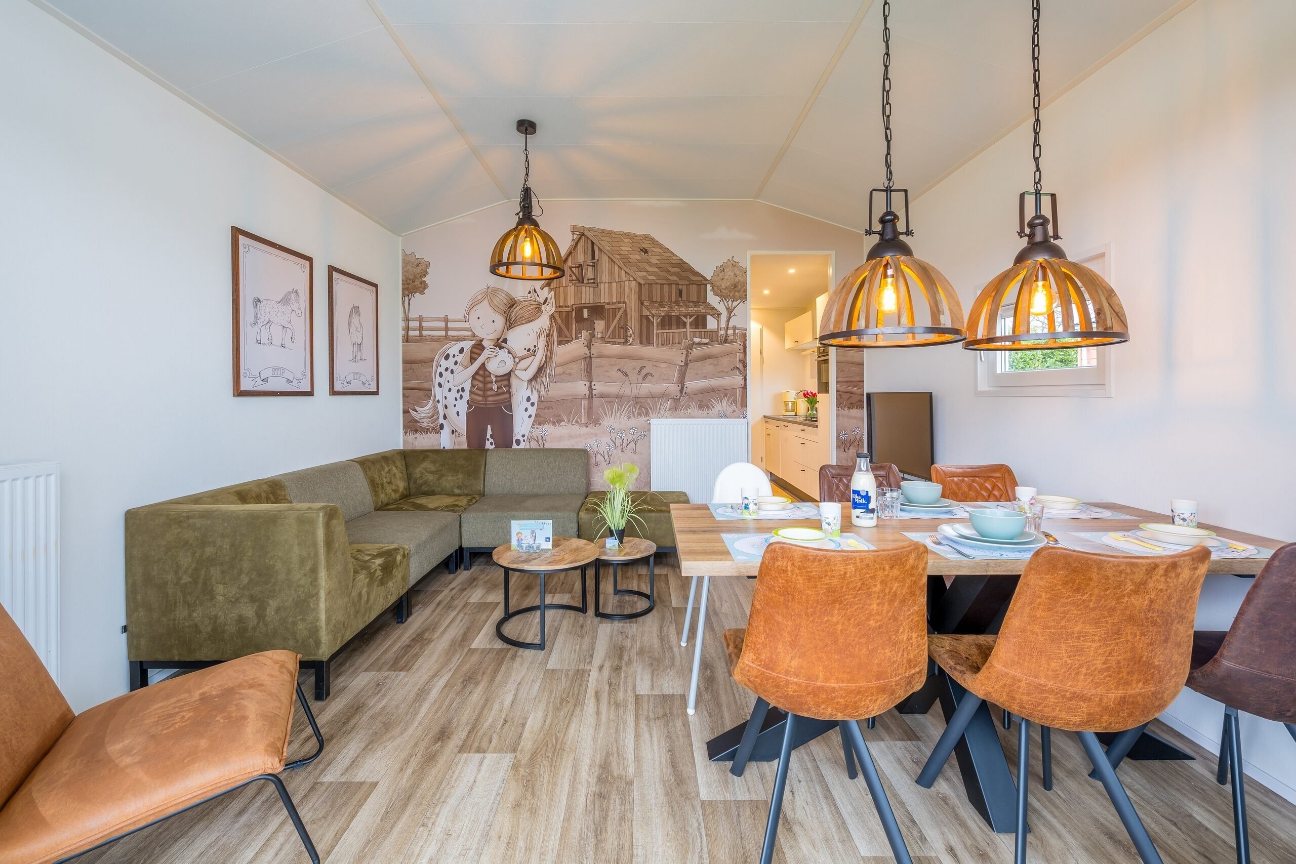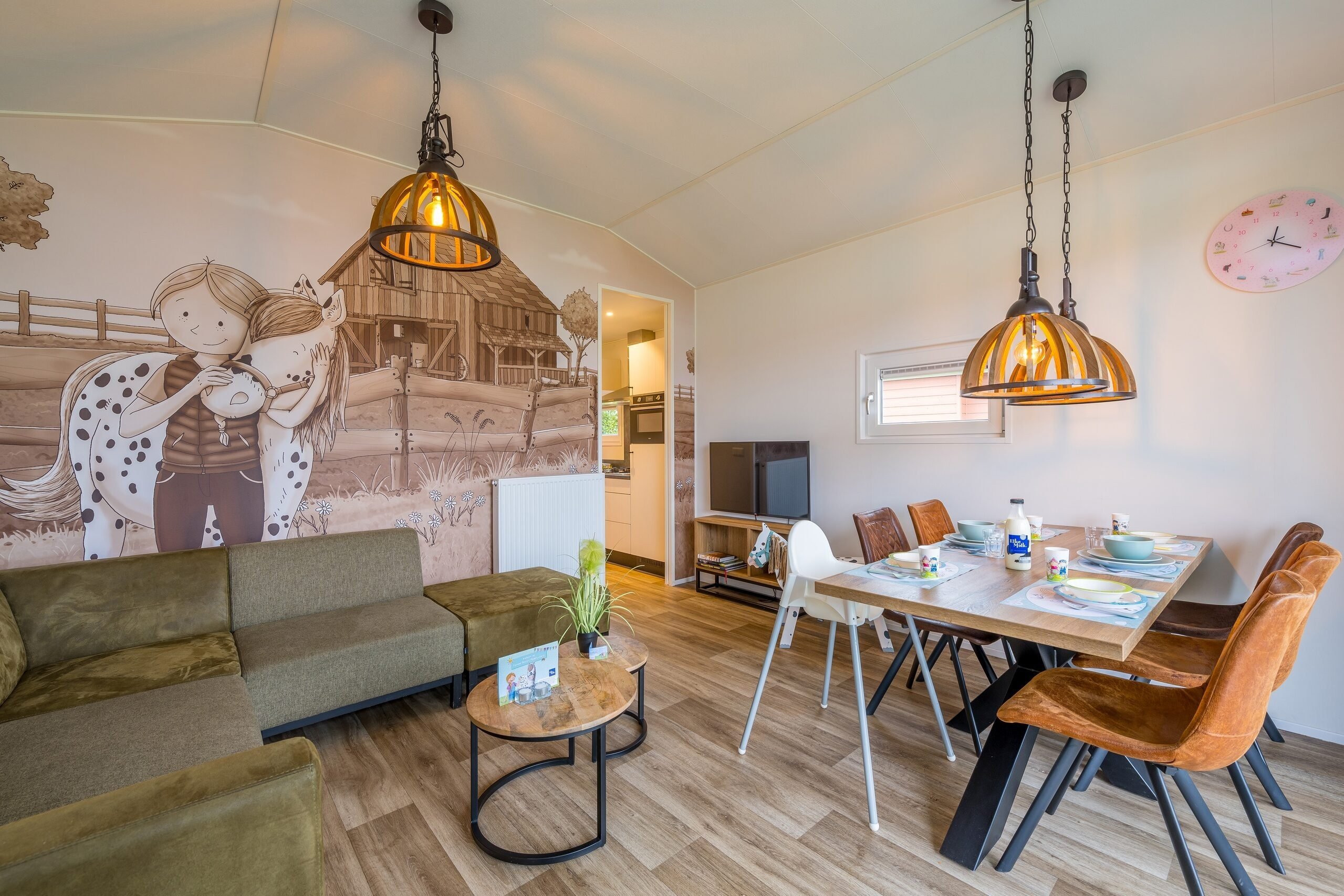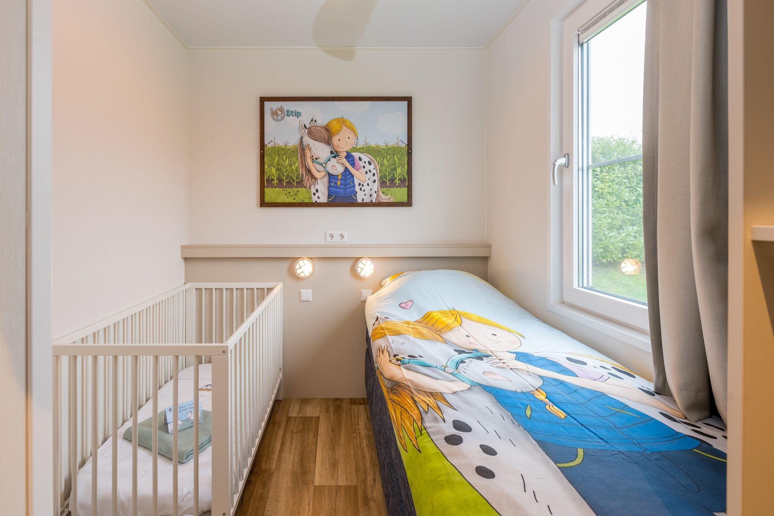De vrijstaande Stip de Pony Lodges zijn volledig gethematiseerd in stijl van Stip de Pony. Je vindt hier dan ook van alles terug over dit ondeugende dierenvriendje van Fien en Teun. Verder beschikt de accommodatie over een gezellige woonkamer met zit- en eethoek. De keuken is voorzien van onder andere een kookplaat, koffiezetapparaat, waterkoker, koelkast, vaatwasser en combimagnetron.