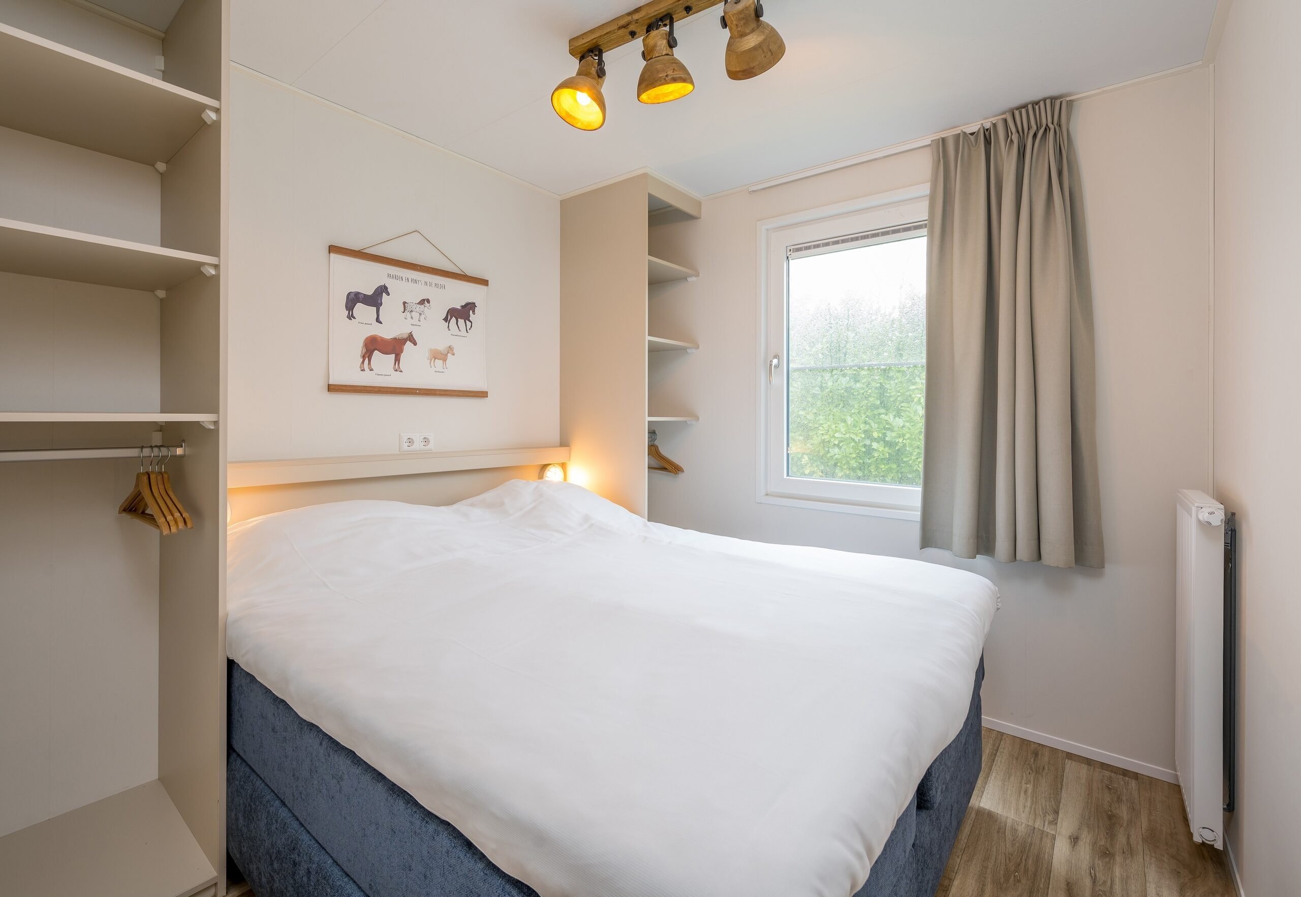 In de drie ruime slaapkamers kan je, op comfortabele boxsprings, genieten van een goede nachtrust. Daarvan is er één slaapkamer met een eenpersoons boxspring en een babybedje, één slaapkamer met een tweepersoons boxspring en één slaapkamer met een stapelbed. Uiteraard is de Stip de Pony Lodge ook voorzien van een badkamer met douche en toilet.
