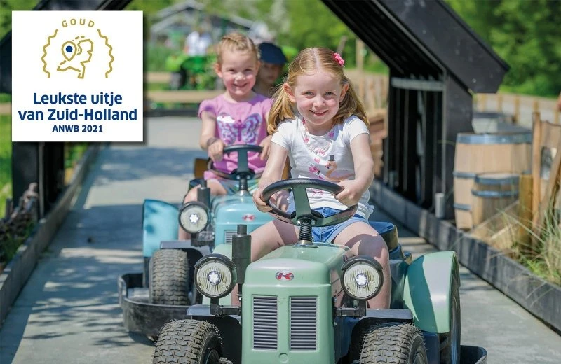 Hoe werkt een molen? Is een tomaat groente of fruit? Hoe maken bijen honing? En hoe komen er gaten in de kaas? Tijdens een avontuurlijke tocht door het park maak je kennis met diverse aspecten van het Hollandse landleven. Van koe melken, tractor rijden en bootje varen tot vogels spotten, fruitkistjes besturen, pony rijden en verdwalen in het wilgendoolhof. Met een zeer breed aanbod aan buitenactiviteiten prikkelt Avonturenboerderij Molenwaard de natuurlijke nieuwsgierigheid van alle kinderen en hun (groot)ouders. Bezoek zeker ook korenmolen ‘De Jonge Sophia’, knuffel de allerliefste dieren, ontdek de oude ambachten, help mee in de moestuin of picknick gezellig samen in de wei. Behaal jouw welverdiende boerderijdiploma, en wordt een écht boertje of boerinnetje net als Fien en Teun!
